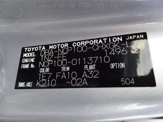 | VIN (Vehicle Identification Number) /Serial No. | NCP100-0113710 |