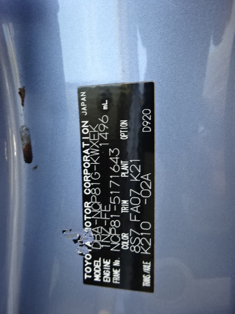 | VIN (Vehicle Identification Number) /Serial No. | NCP81-5171643 |