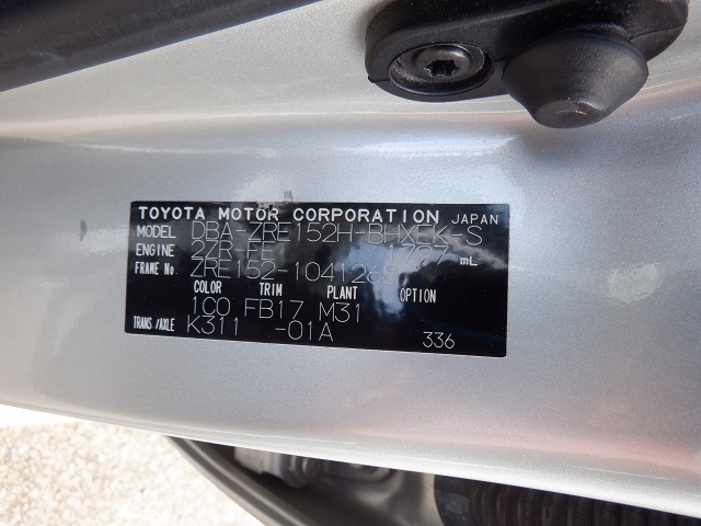 | VIN (Vehicle Identification Number) /Serial No. | ZRE152-1041268 |