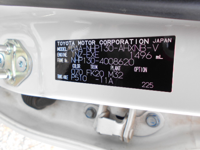 | VIN (Vehicle Identification Number) /Serial No. | NHP130-4008620 |
