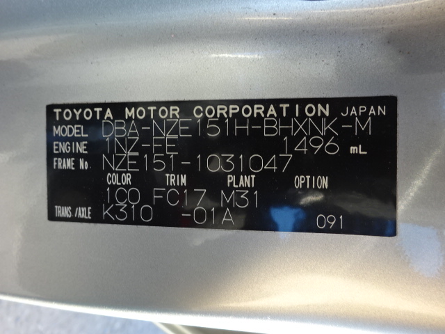 | VIN (Vehicle Identification Number) /Serial No. | NZE151-1031047 |
