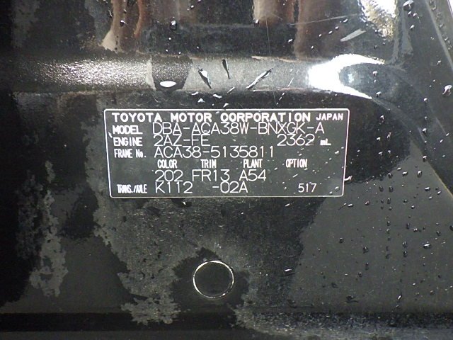TOYOTA VANGUARD 2009YEAR/JULY MODEL:DBA-ACA38W 2400cc ACA38-5135811